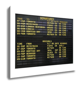 Gallery Wrapped Canvas, Airport Board Showing Departures And Arrivals To Various Cities Isolated On