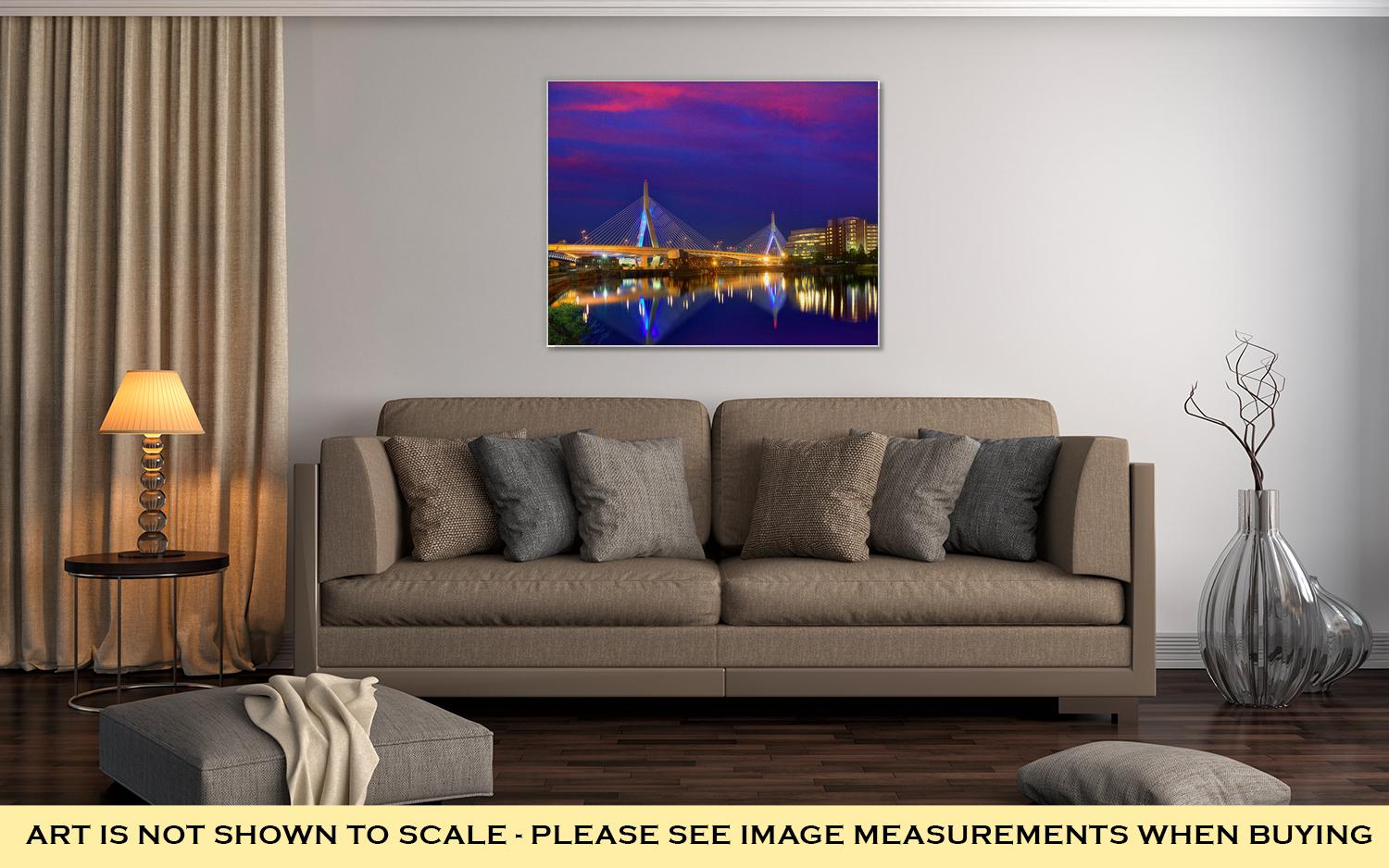 The artist who provided this image described the image in this way: Boston Zakim bridge sunset in Bunker Hill Massachusetts USA