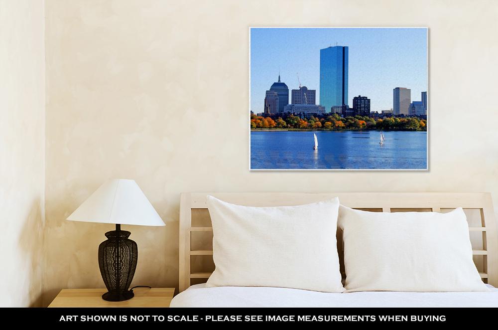 The artist who provided this image described the image in this way: Boston, Massachusetts skyline behind the Charles River
