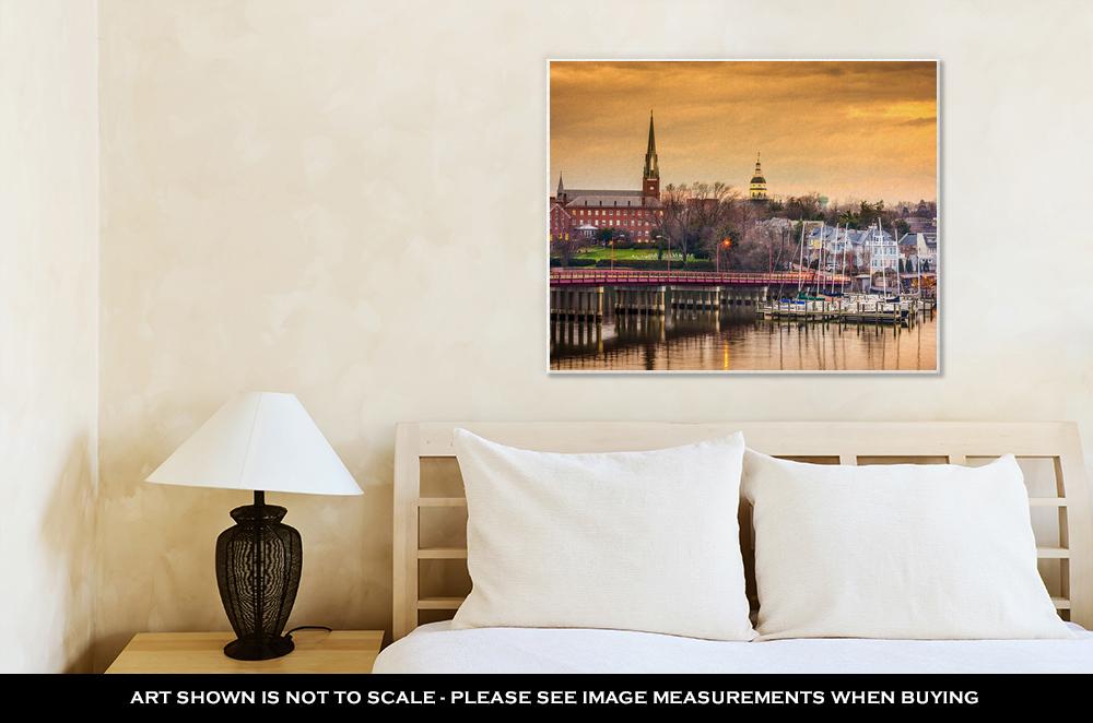 The artist who provided this image described the image in this way: Annapolis, Maryland, USA State House and St. Mary's Church viewed over Annapolis Harbor and Compromise Bridge.